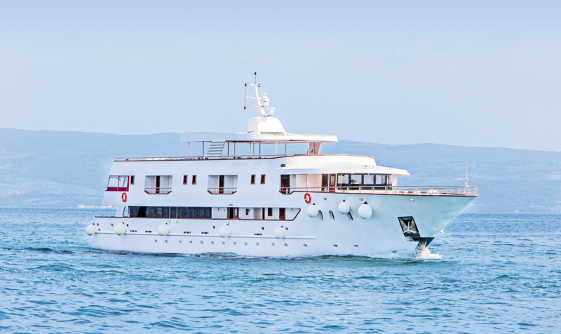 Originally built in 2004 and recently refreshed, the ship now features an eclectic 1970s-inspired décor that brings together wood, metal, and leather to complement the gleaming Burmese teak floors and decks.